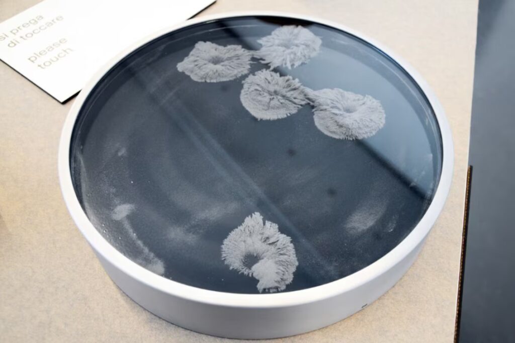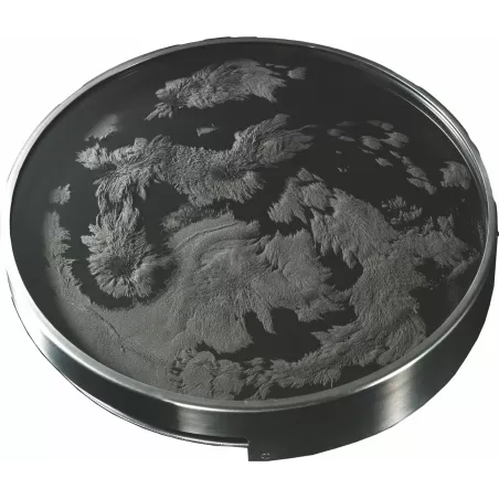 Platine optique-magnétique, œuvre d’art multiple  – Alessi. La « platine opto-magnétique » de Davide Boriani fait partie du projet « Miriorama » du Gruppo T. Des pistes magnétiques rotatives se déplacent sur une surface de poudre métallique. Œuvres multiples en aluminium, verre et fer. Édition limitée à 99 exemplaires numérotés et 9 épreuves d’auteur.