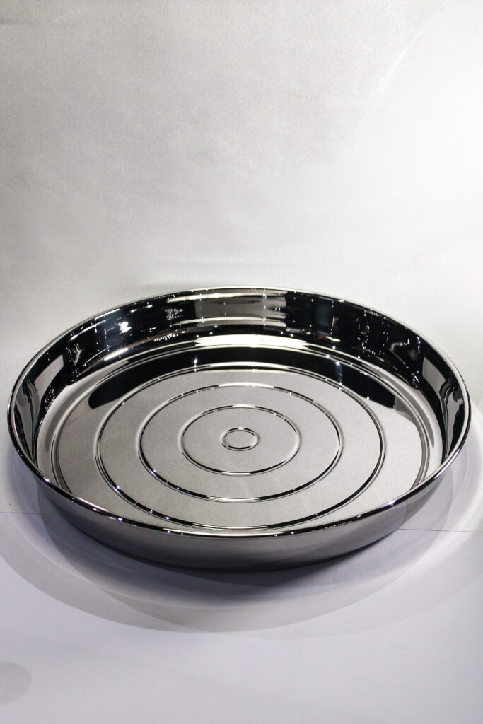 Avec son diamètre généreux de 36 cm, il est parfaitement adapté pour servir boissons, amuse-bouches ou créations culinaires lors de vos réceptions ou moments conviviaux. Son profil légèrement surélevé assure une tenue sûre des objets servis, tandis que la finition miroir caractéristique d’Alessi reflète la lumière et ajoute une touche de luxe discret à votre table.
